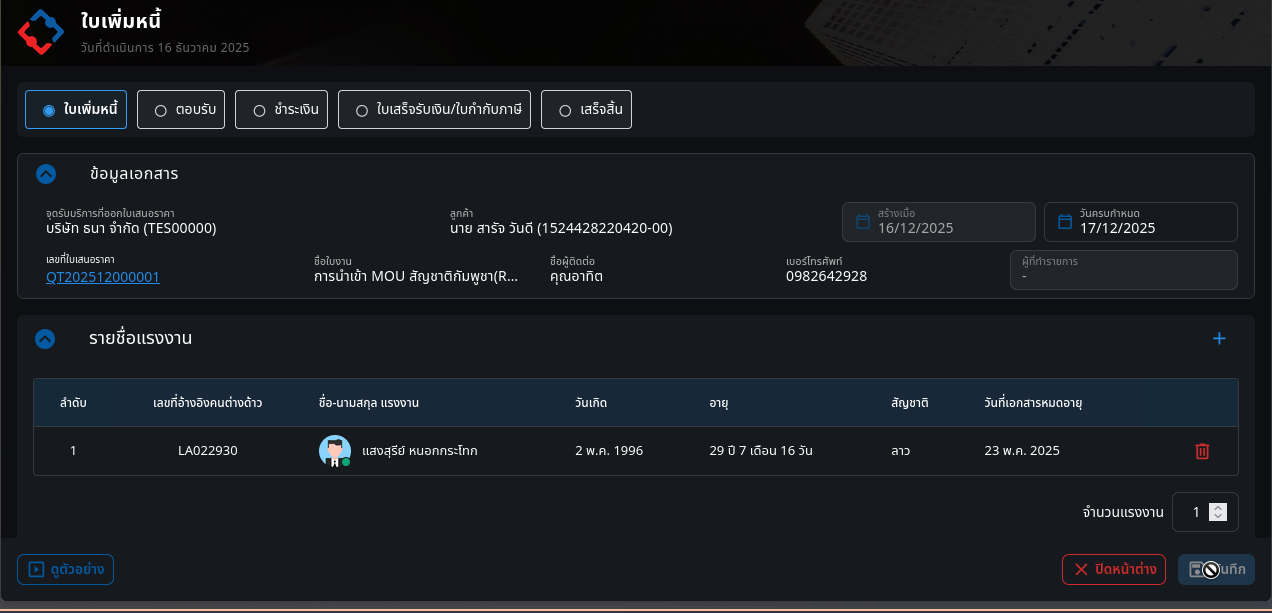 🐞 Bug: ใบเพิ่มหนี้ในกรณีที่เลือกแรงงานแต่ไม่เลือกสินค้า #11